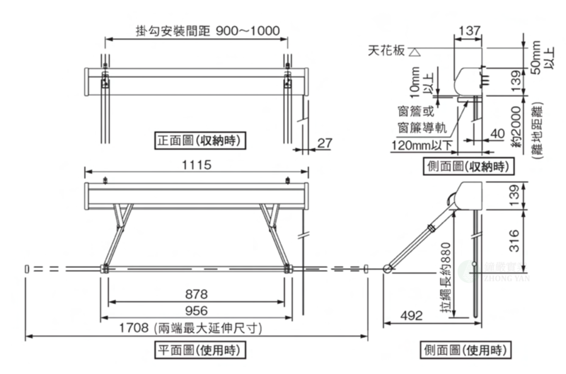 • 適用於室內晾衣,可鎖設於冷氣旁,加強效果。